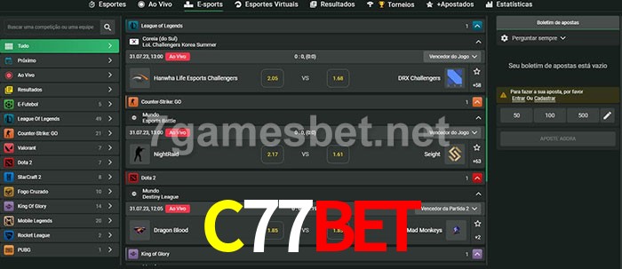 A aposta C77Bet oferece aos jogadores a experiência mais conveniente de apostas em eSports!